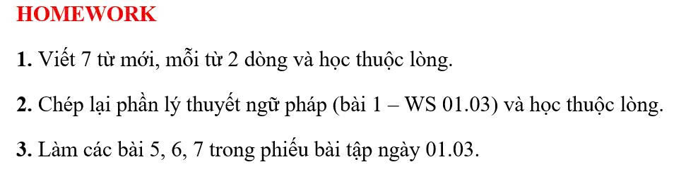 THỨ TƯ NGÀY 03/03/2026 - BTVN 5