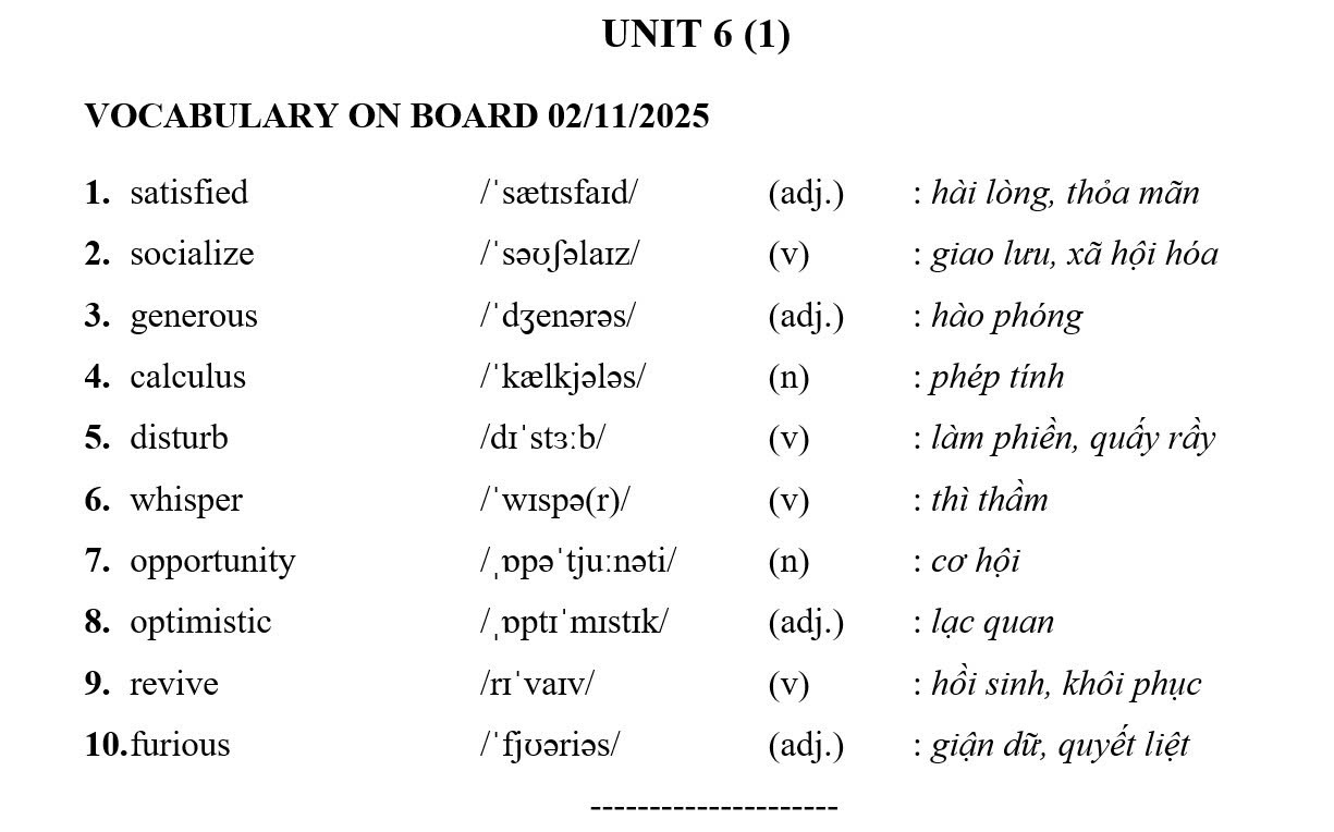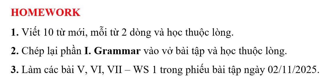 THỨ TƯ NGÀY 29/10/2025 - BTVN 8