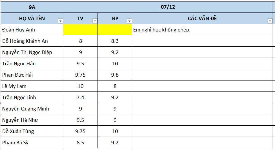 CHỦ NHẬT NGÀY 07/12/2025 - QLHS 9A
