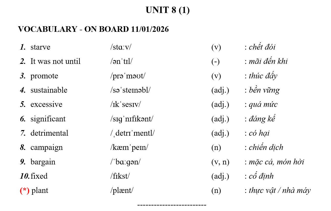 CHỦ NHẬT NGÀY 11/01/2026 - BTVN 8