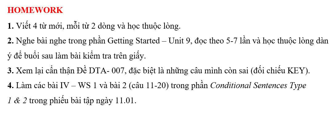 THỨ NĂM NGÀY 08/01/2026 - BTVN 9A