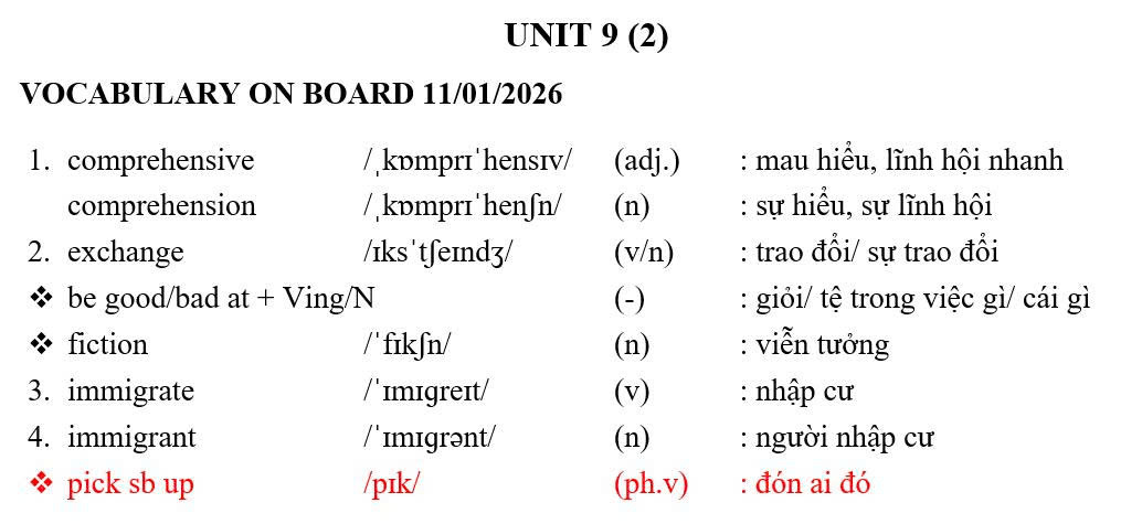 CHỦ NHẬT NGÀY 11/01/2026 - BTVN 9A