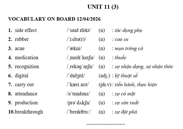 THỨ TƯ NGÀY 01/04/2026 - BTVN 8