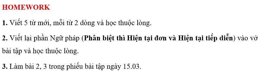 THỨ TƯ NGÀY 03/03/2026 - BTVN 5