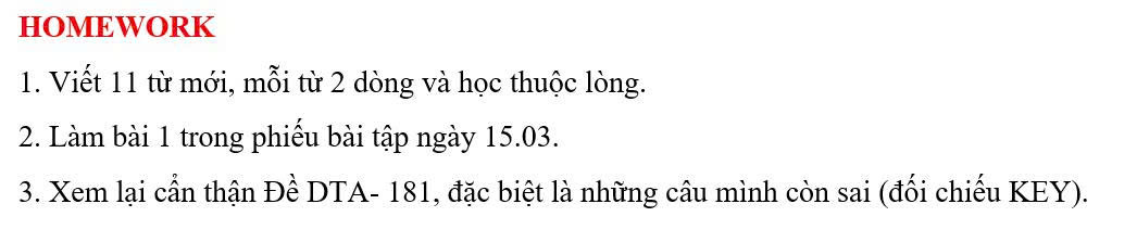 THỨ NĂM NGÀY 12/03/2026 - BTVN 9A