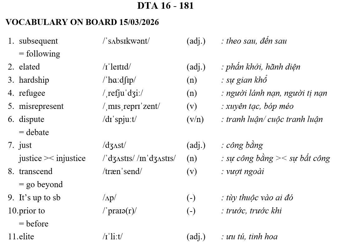 CHỦ NHẬT NGÀY 15/03/2026 - BTVN 9A