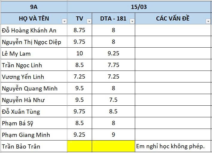 CHỦ NHẬT NGÀY 15/03/2026 - QLHS 9A