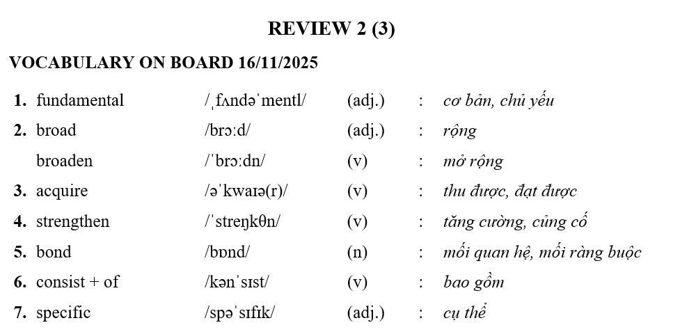 THỨ NĂM NGÀY 13/11/2025 - BTVN 9A