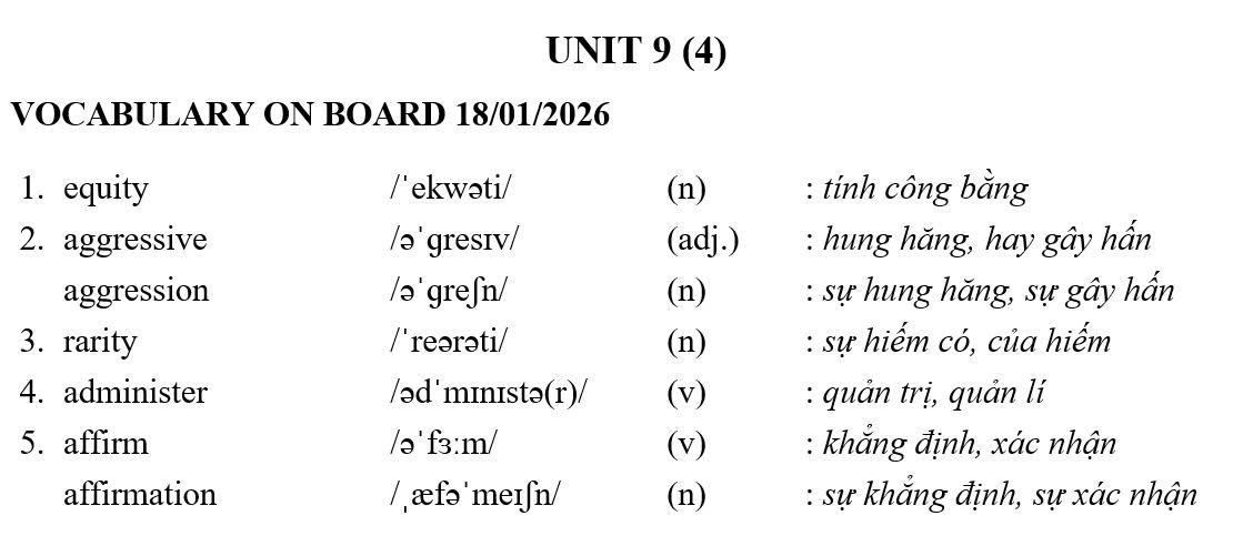 CHỦ NHẬT NGÀY 11/01/2026 - BTVN 9A