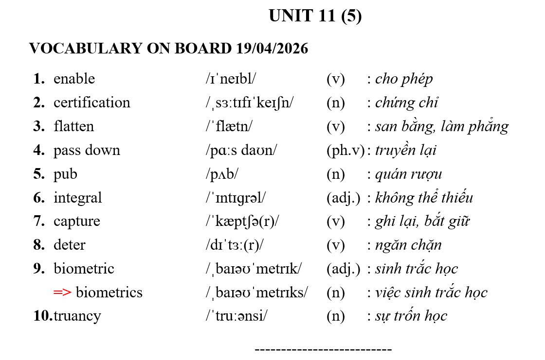 THỨ TƯ NGÀY 15/04/2026 - BTVN 8