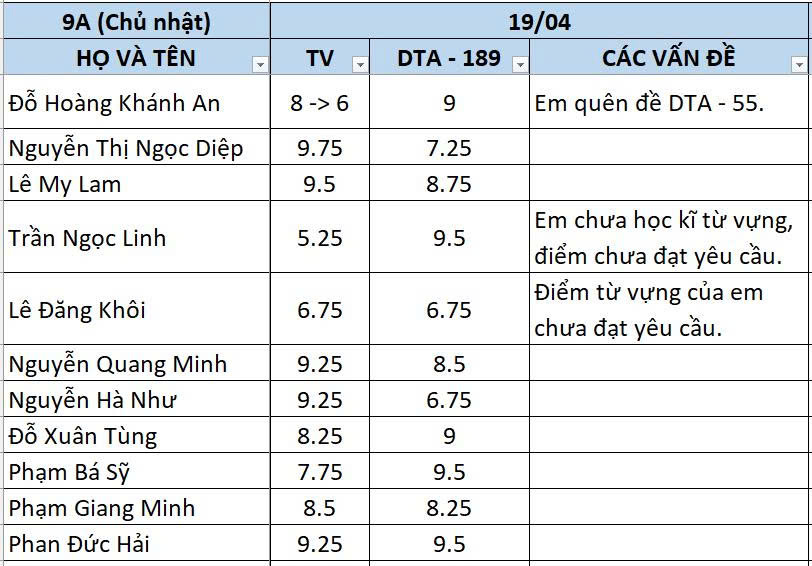 CHỦ NHẬT NGÀY 19/04/2026 - QLHS 9A