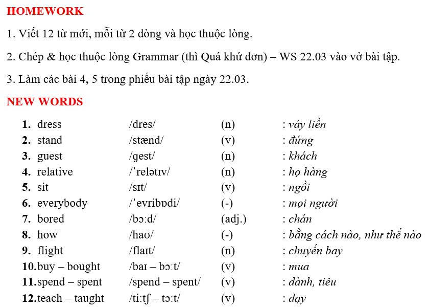 THỨ TƯ NGÀY 18/03/2026 - BTVN 6B