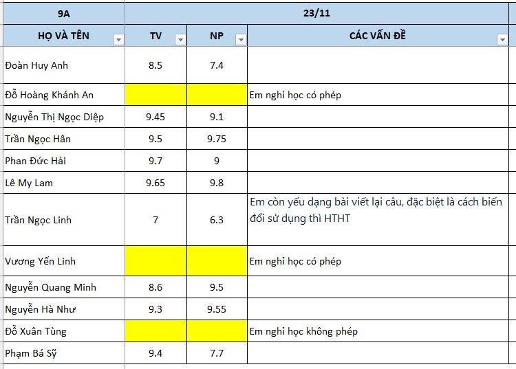 CHỦ NHẬT NGÀY 23/11/2025 - QLHS 9A