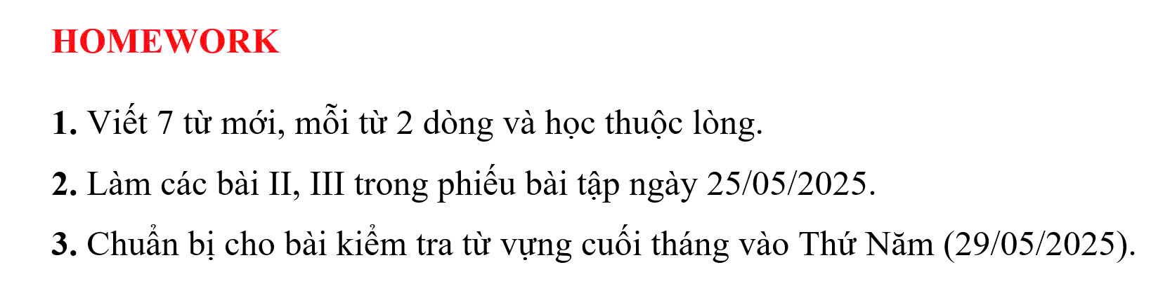 THỨ NĂM NGÀY 22/05/2025 - BTVN 8A