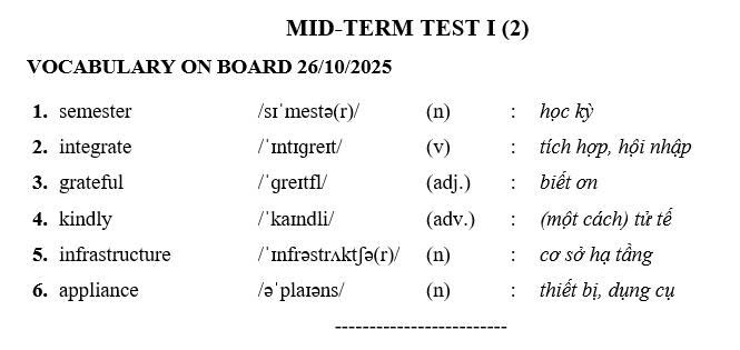 THỨ TƯ NGÀY 22/10/2025 - BTVN 8