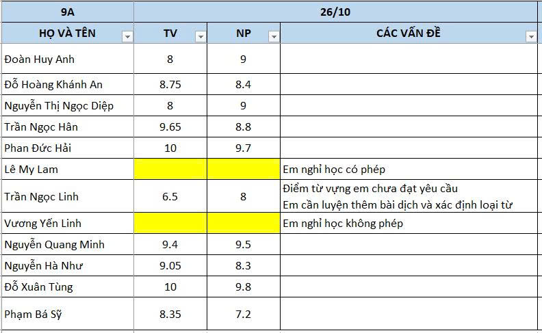 THỨ NĂM NGÀY 23/10/2025 - QLHS 9A