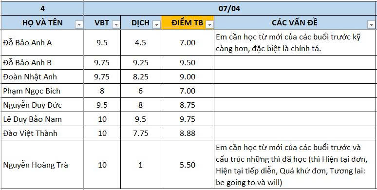 THỨ BA NGÀY 07/04/2026 - QLHS 4