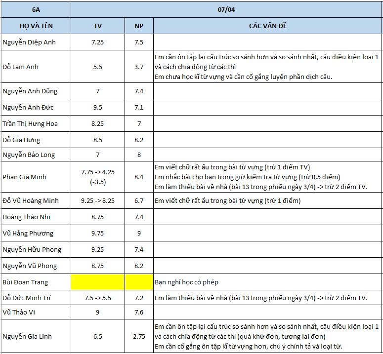 THỨ BA NGÀY 07/04/2026 - QLHS 6A