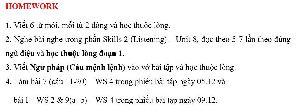THỨ SÁU NGÀY 05/12/2025 - BTVN 6A