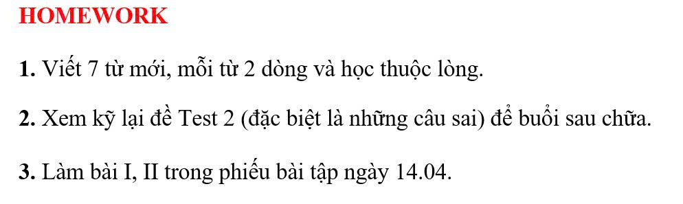 THỨ BA NGÀY 14/04/2026 - BTVN 6A