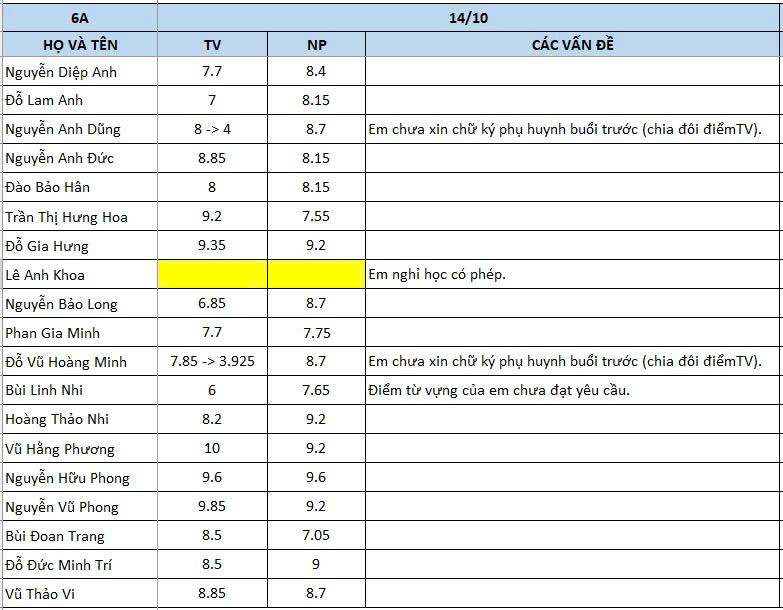 THỨ BA NGÀY 14/10/2025 - QLHS 6