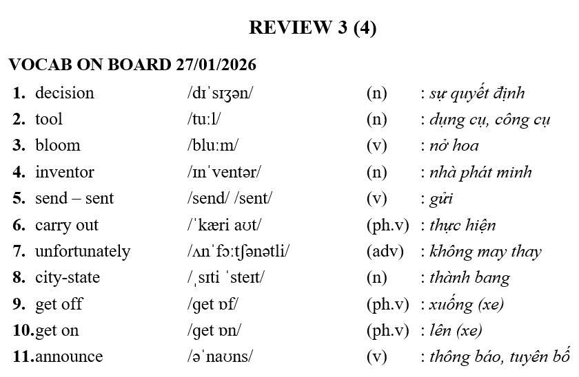THỨ BA NGÀY 27/01/2026 - BTVN 6A