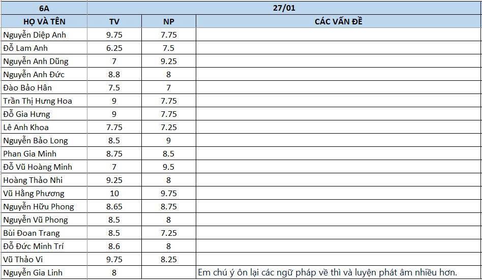 THỨ BA NGÀY 27/01/2026 - QLHS 6A