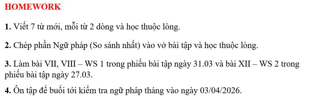 THỨ BA NGÀY 31/03/2026 - BTVN 6A