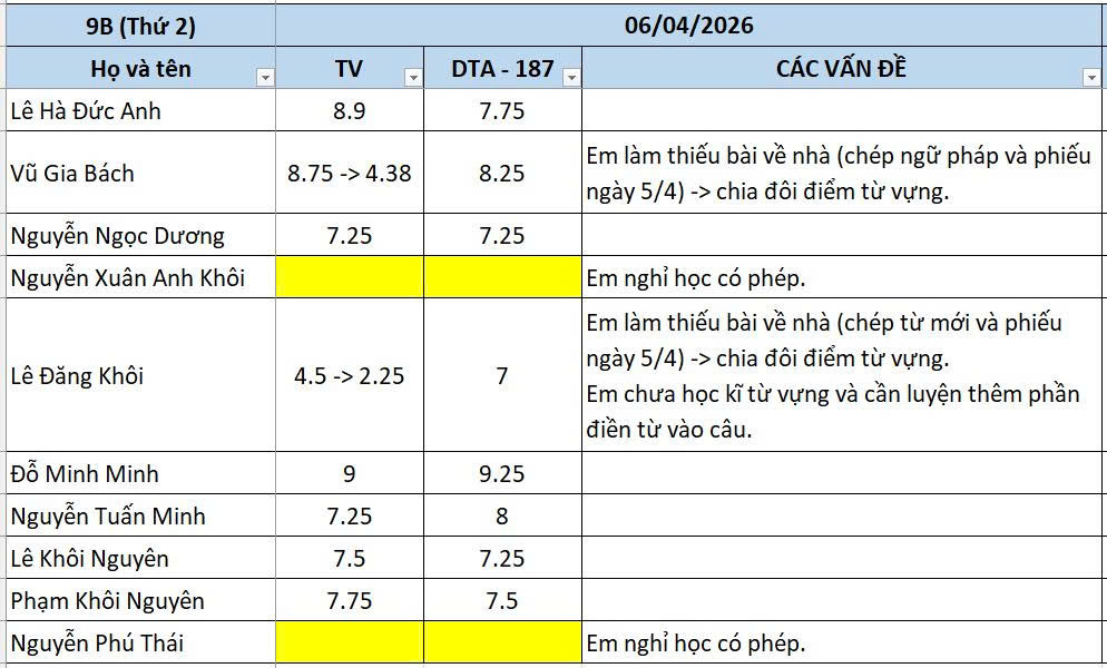 THỨ HAI NGÀY 06/04/2026 - QLHS 9B