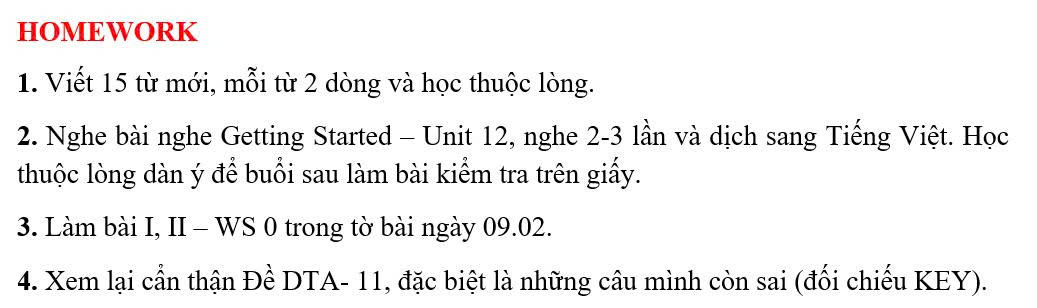 THỨ HAI NGÀY 09/02/2026 - BTVN 9B