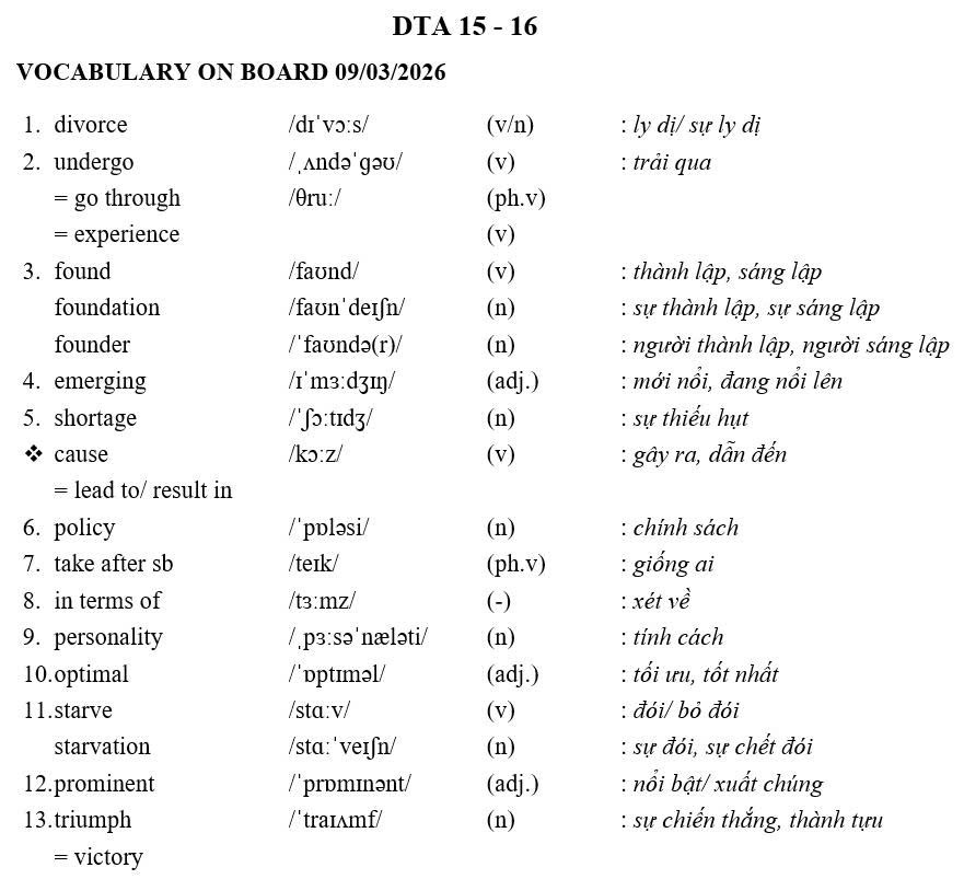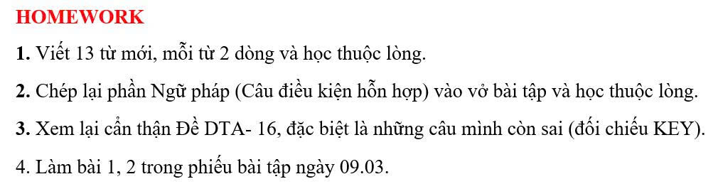THỨ HAI NGÀY 09/03/2026 - BTVN 9B