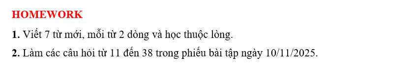 THỨ HAI NGÀY 10/11/2025 - BTVN 9B