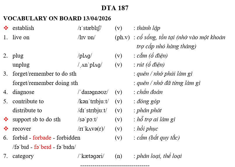 THỨ HAI NGÀY 13/04/2026 - BTVN 9B