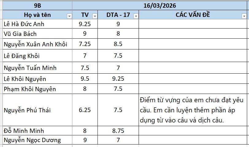 THỨ HAI NGÀY 16/03/2026 - QLHS 9B