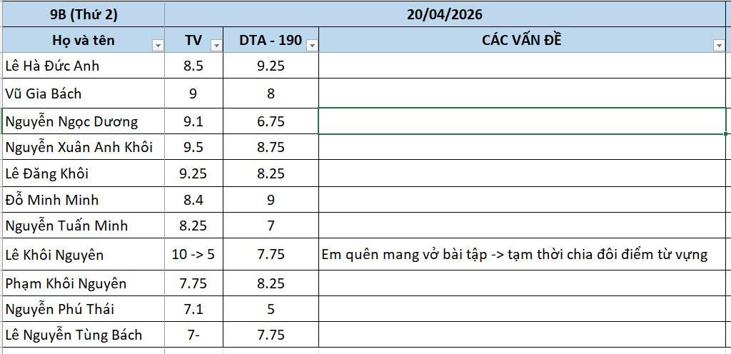 THỨ HAI NGÀY 20/04/2026 - QLHS 9B