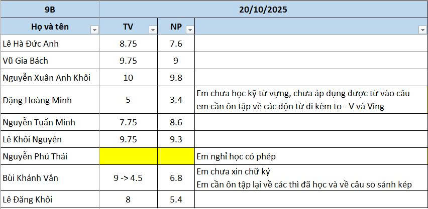 THỨ HAI NGÀY 20/10/2025 - QLHS 9B