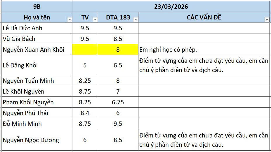 THỨ HAI NGÀY 23/03/2026 - QLHS 9B