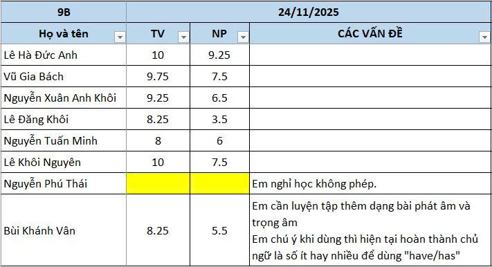 THỨ SÁU NGÀY 14/11/2025 - QLHS 9B