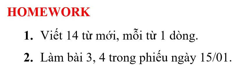 THỨ HAI NGÀY 19/01/2026 - BTVN 2
