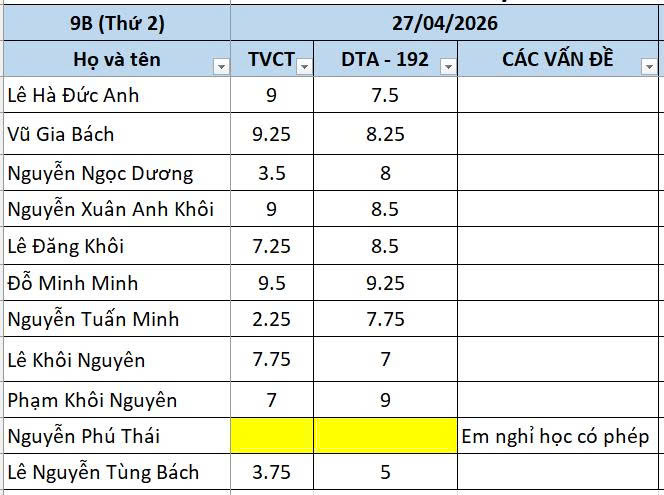 THỨ HAI NGÀY 27/04/2026 - QLHS 9B