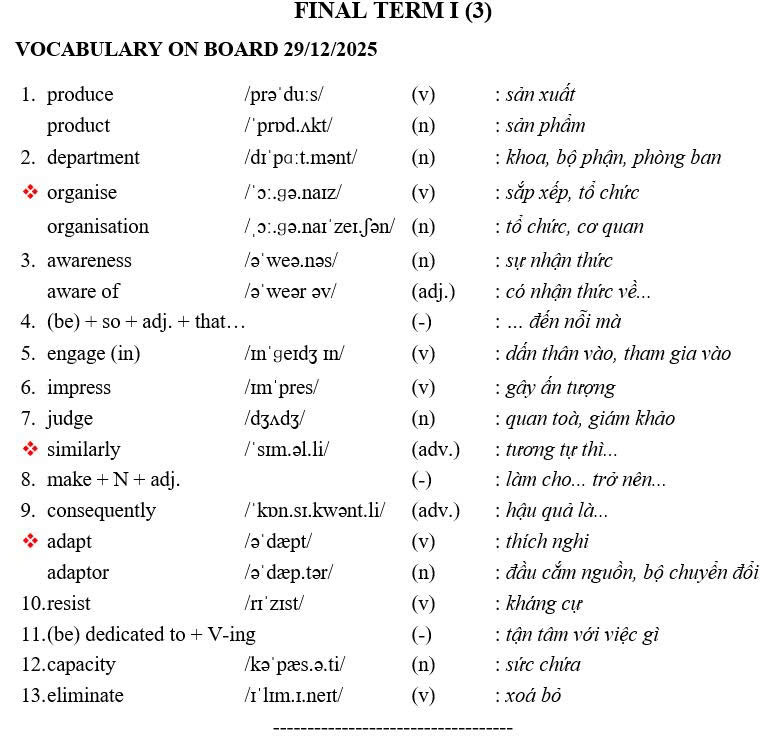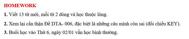 THỨ HAI NGÀY 29/12/2025 - BTVN 9B