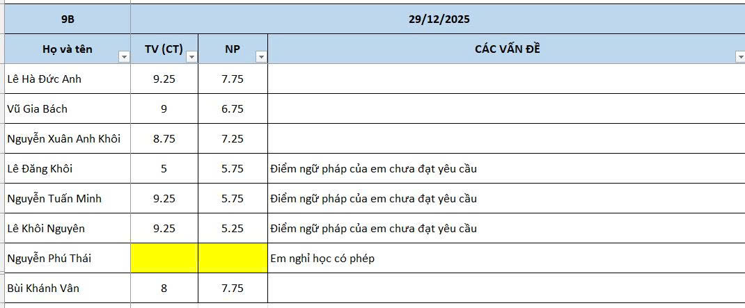 THỨ SÁU NGÀY 26/12/2025 - QLHS 9B