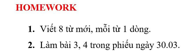 THỨ HAI NGÀY 30/03/2026 - BTVN 2