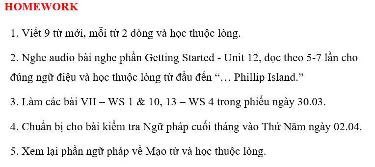 THỨ NĂM NGÀY 26/03/2026 - BTVN 7A