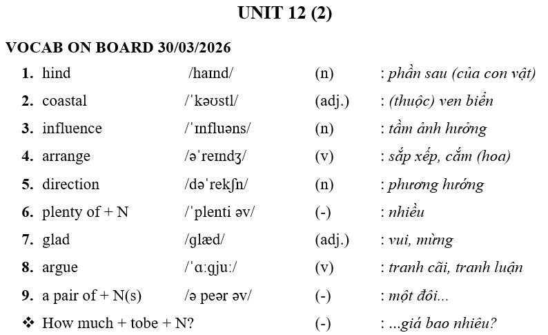 THỨ HẢI NGÀY 30/03/2026 - BTVN 7