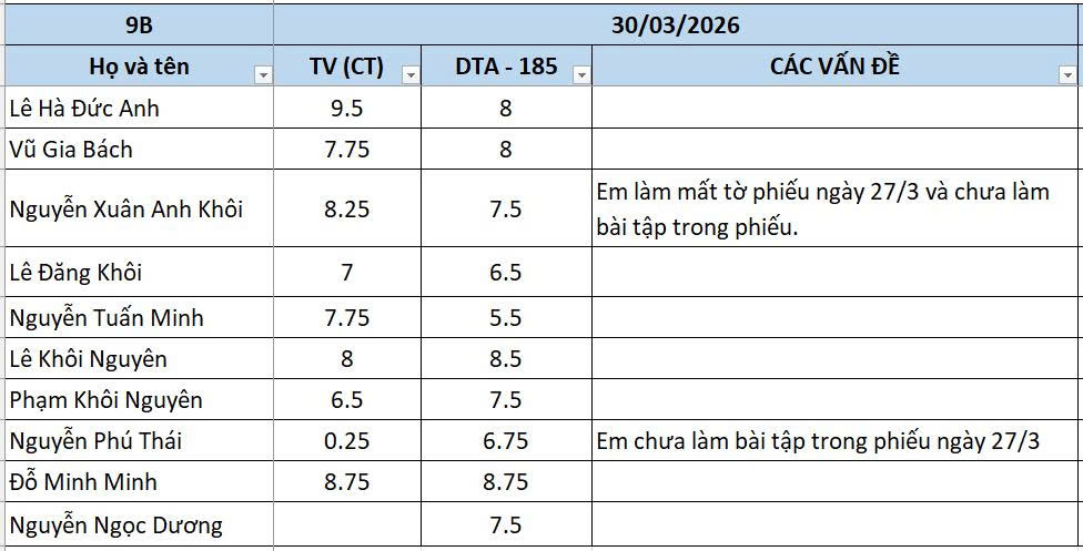 THỨ HAI NGÀY 30/03/2026 - QLHS 9B