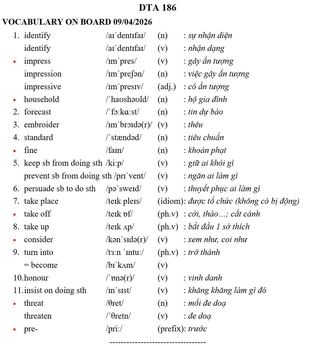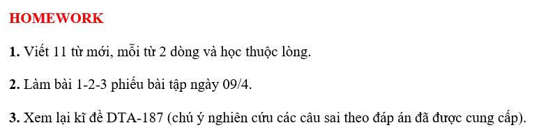 THỨ NĂM NGÀY 09/04/2026 - BTVN 9A