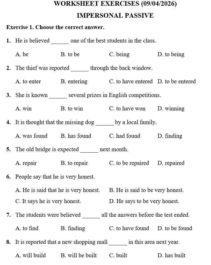 CHỦ NHẬT NGÀY 05/04/2026 - BTVN 9A