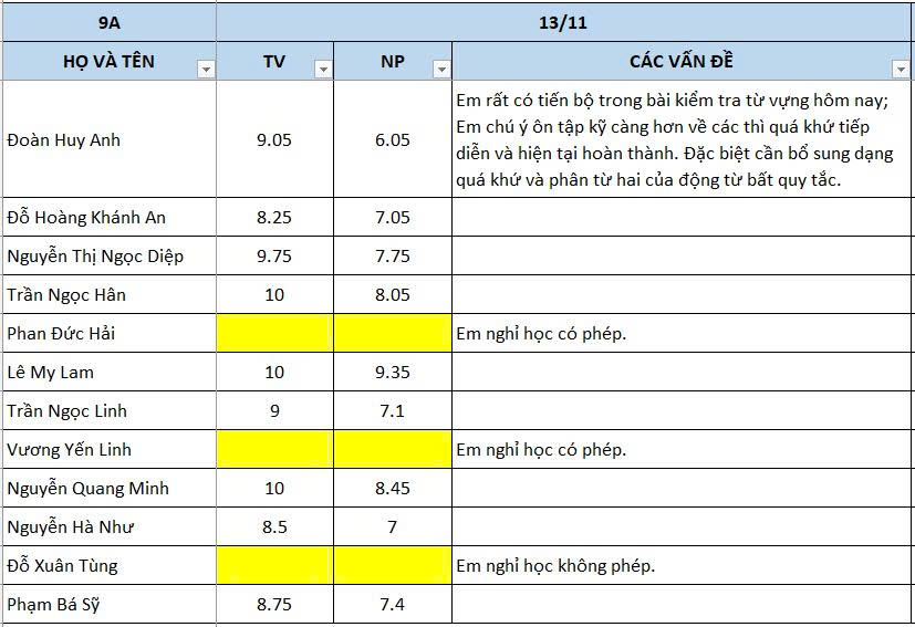 THỨ NĂM NGÀY 13/11/2025 - QLHS 9A