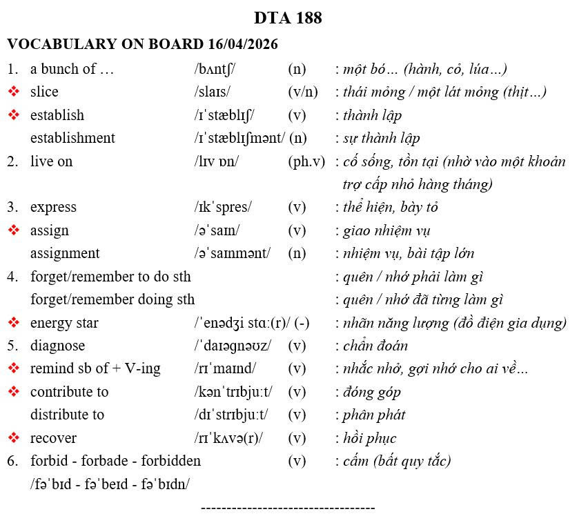 THỨ NĂM NGÀY 16/04/2026 - BTVN 9A